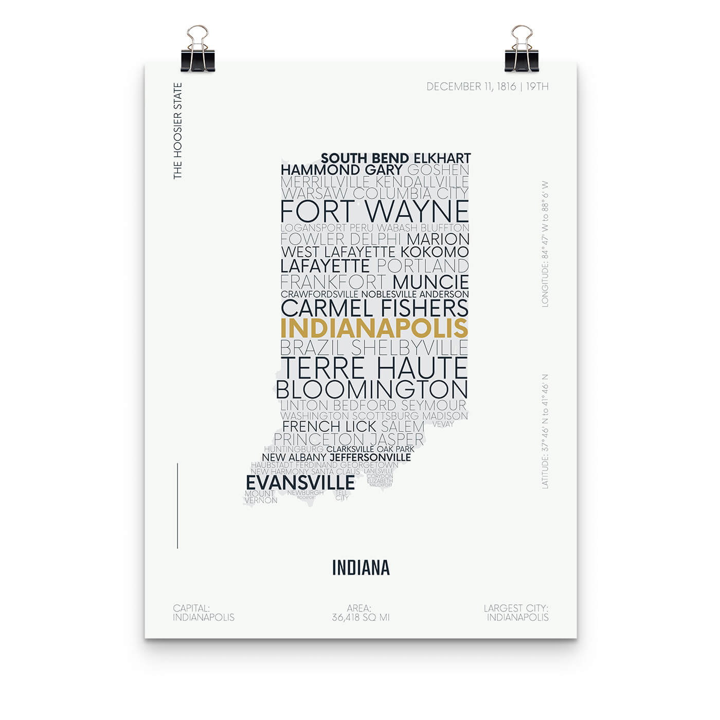 Indiana Typography Map Poster