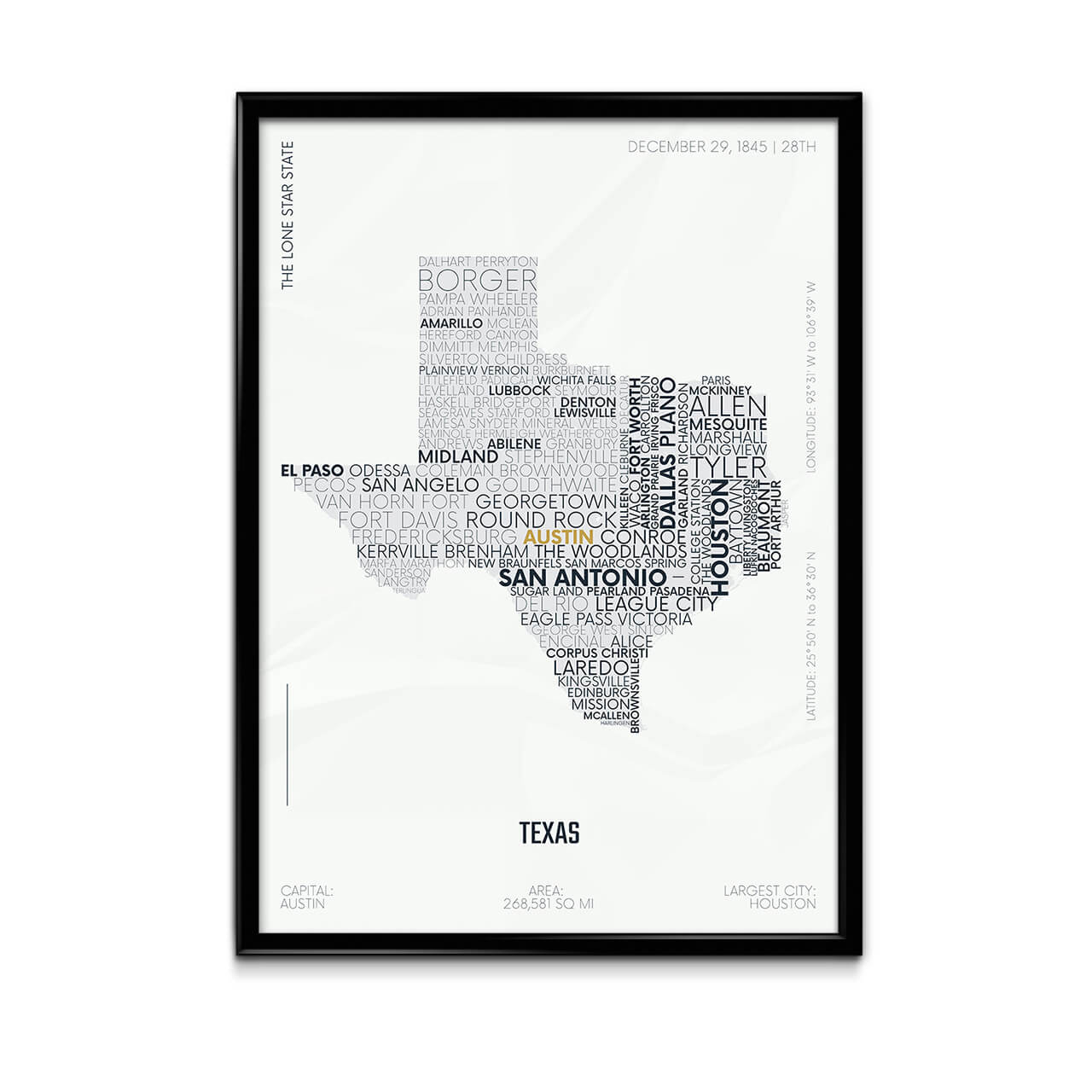 Texas Typography Map Poster